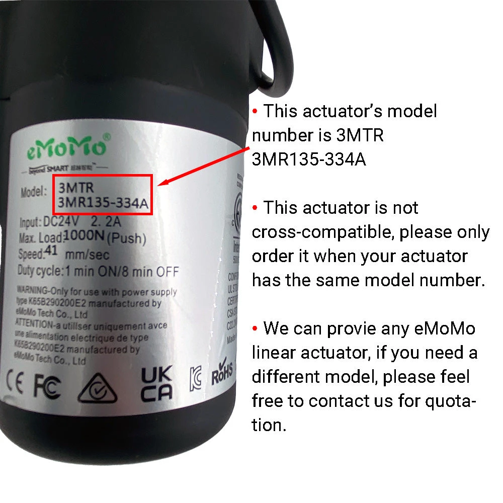- This actuator is NOT universal, DO NOT ORDER if your linear actuator’s model number is not 3MTR 3MR135-334A