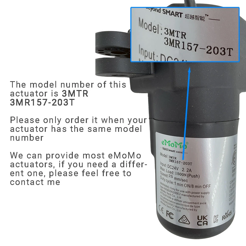 - This is the genuine eMoMo 3MTR 3MR157-203T linear actuator. This actuator is a direct replacement for the eMoMo 3MTR 3MR157-203T linear actuator, if your actuator has the same model number, this one will be a perfect replacement.