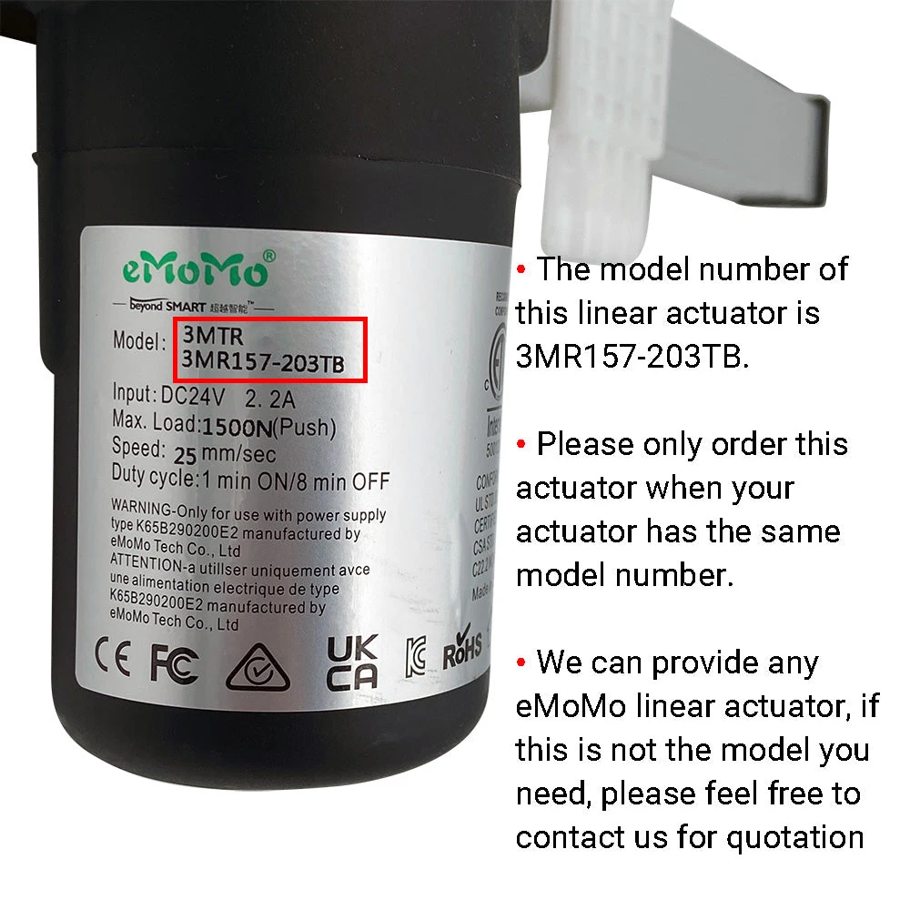 - This actuator is NOT universal, DO NOT ORDER if your linear actuator’s model number is not 3MTR 3MR157-203TB