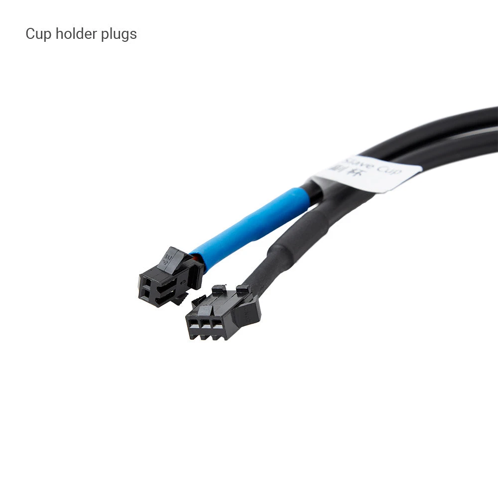 - It connects with two cup holders, a linear actuator motor, an LED light stripe, a heating pad, 2 vibration motor sets, and connects to the power adapter.