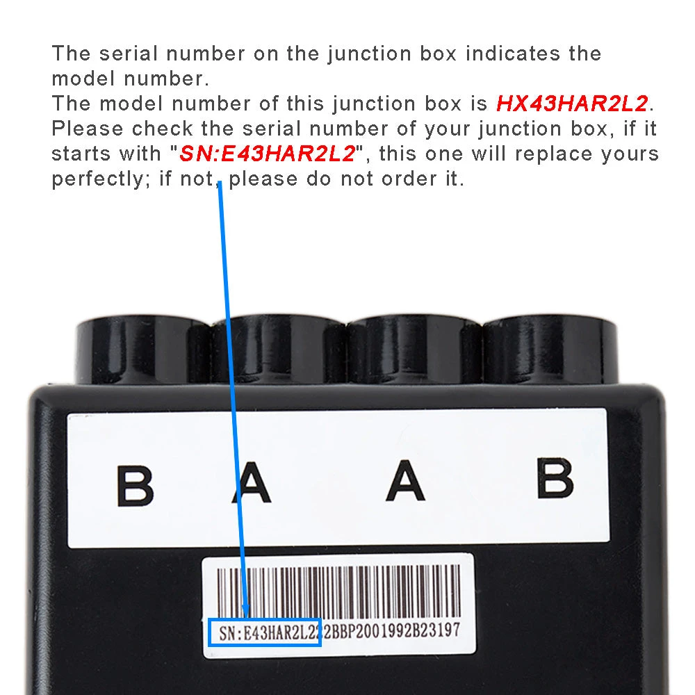 Please check the serial number of your junction box, if it starts with “SN:E43HAR2L2”, this one will replace yours perfectly; if not, please do not order it.