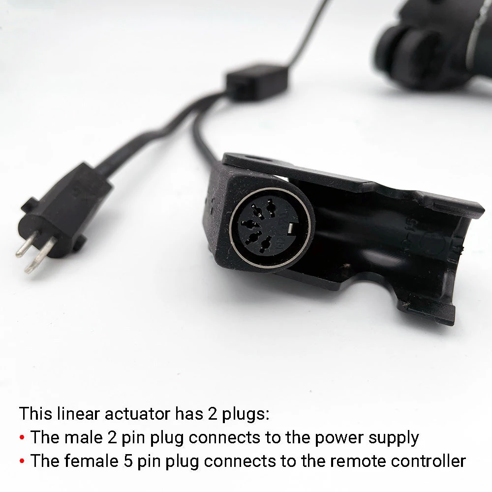- This actuator has 2 plugs: 1*5pin female, 1*2pin male.